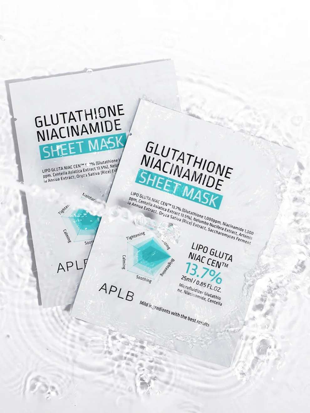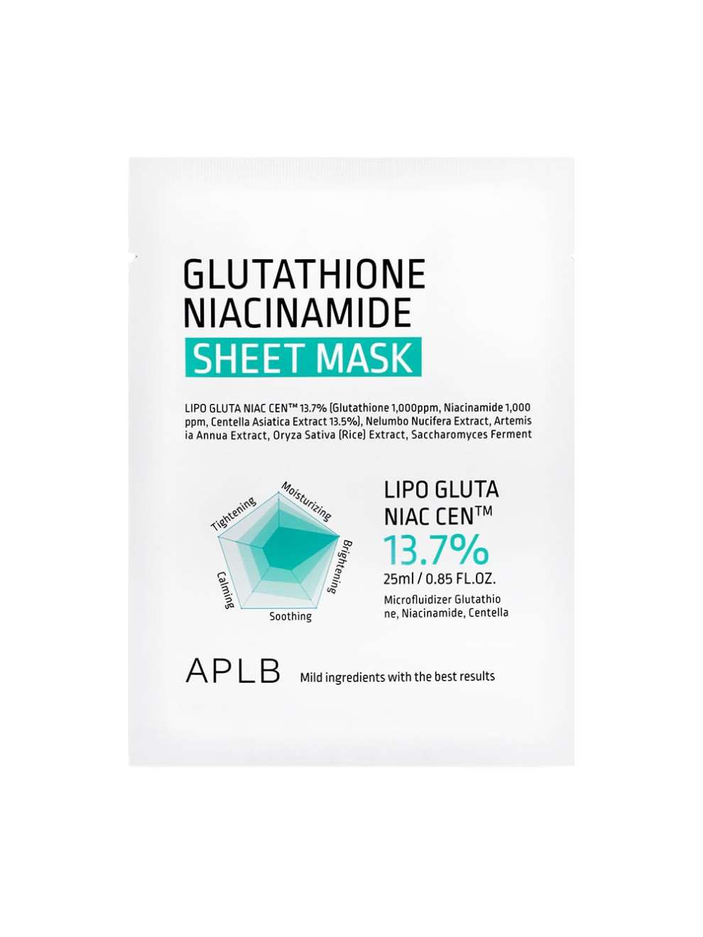 The APLB Glutathione Niacinamide Sheet Mask hydrates, soothes, and brightens skin with Glutathione, Niacinamide, and 13.5% Centella Asiatica Extract. Its soft, non-sticky cellulose sheet ensures quick absorption, leaving skin fresh and radiant. Suitable for all skin types, it’s gentle, fragrance-free, and cruelty-free, perfect for sensitive skin