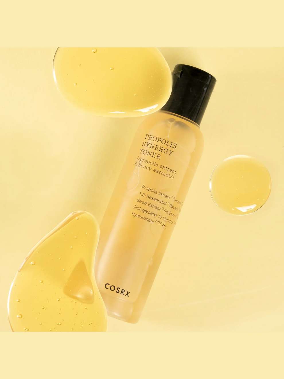 The COSRX Full Fit Propolis Synergy Toner is formulated with 72.6% black bee propolis extract and 10% honey extract to hydrate, soothe, and restore skin. Its essence-like, fast-absorbing texture delivers a dewy, supple finish without stickiness. Rich in antibacterial and anti-inflammatory properties, it supports skin healing and is suitable for all skin types, especially dry or dull skin.